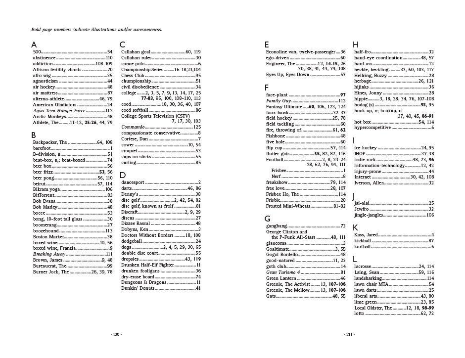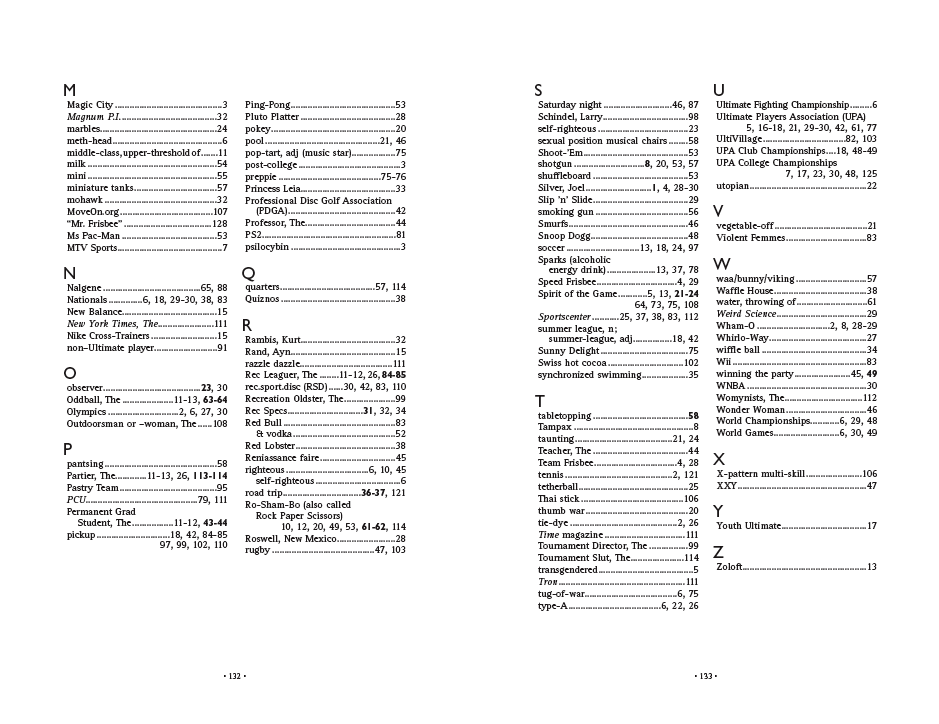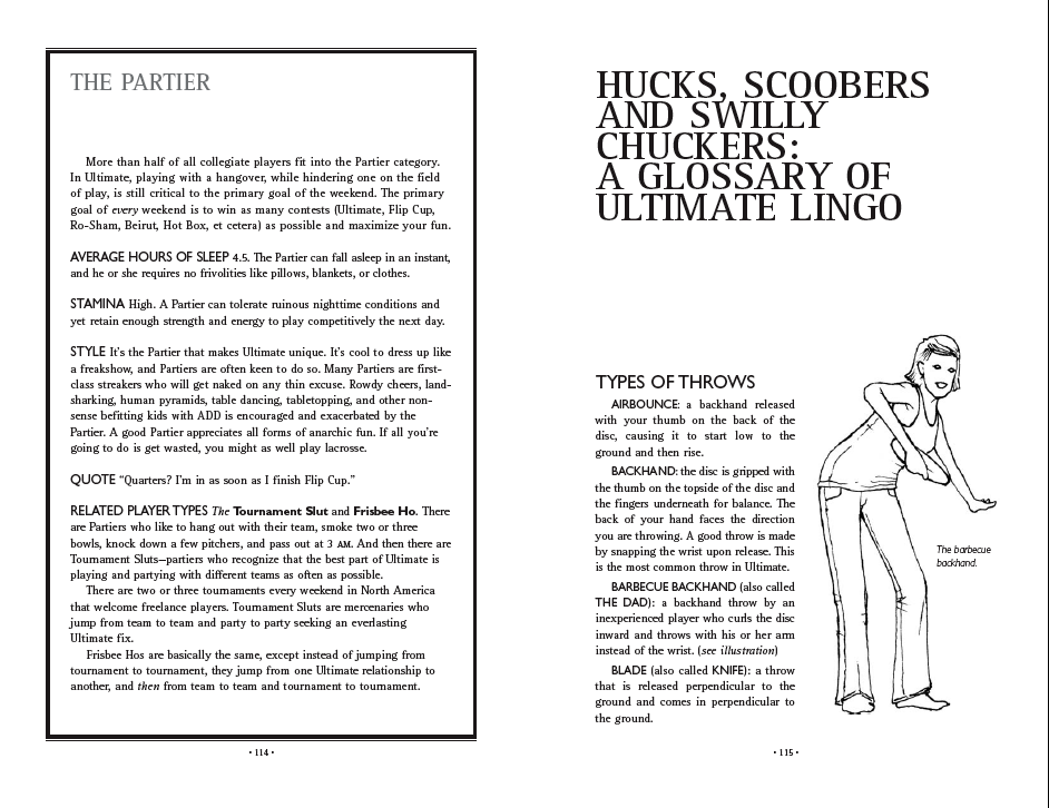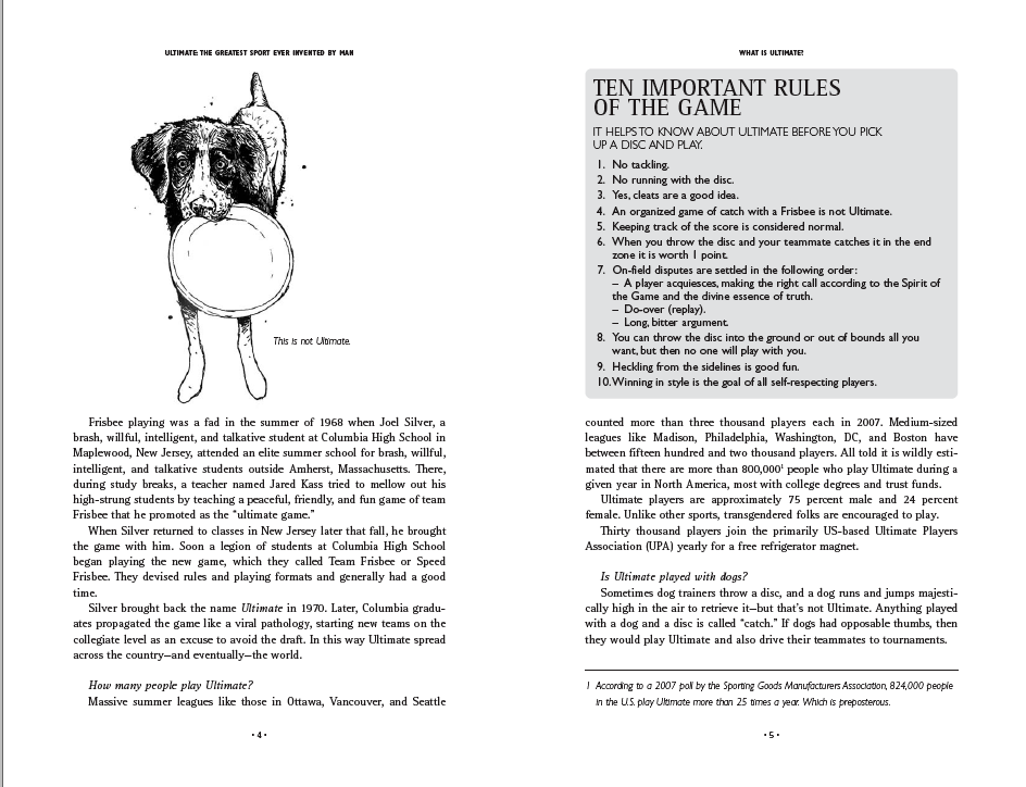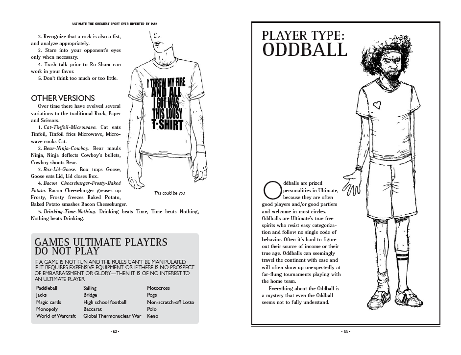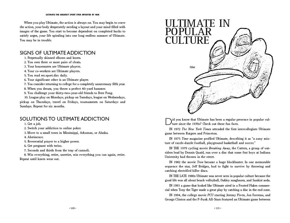 illustrated by Cade Beaulieu. Additional writing by Jane Carlen, Katie Derickson, others • for the UK and Europe, order from lookfly.com Partial list of New Chapters and Revisions: NEW Forty-Two Most Common Nicknames • Go Pro Or No? • Ultimate in Popular Culture • Ultimate Overseas • The Sandwich Game • Divisions of Play • Tips for Team Dinners• Life After 24/7 Ultimate • How To Tweet Your Team• How To Make Millions on Ultimate*º by SLUDGE. learn more about it • order a book or two • read some: pgs 4-5 32-33 36-37 58-59 66-67 88-89 98-99 106-107 110-111 114-115 index1 index2 proposed